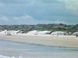 This beach house features three upstairs bedrooms; the master with a king size bed and private porch, the 2nd bedroom with a queen; and a kid's room with two bunk beds. The main floor features two sitting areas, a dining area, and a furnished wraparound deck. The property also has a one car garage with washer and dryer; additional parking is just a few steps from the door