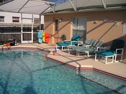 The pool and lanai are 21 by 34 foot. The pool is completely screened and is in an unusually large garden which is completely fenced in and , therefore , private and not overlooked. A pool blanket is available to retain the heat.