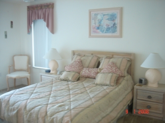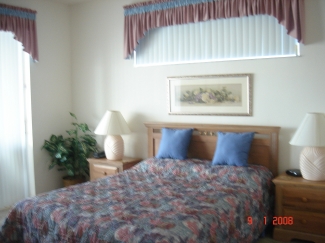 Both master bedrooms have queen-sized beds and cable TVs: both have beautiful lake views, one has a private balcony and the other has sliding doors leading to the pool and lanai. Of the three other bedrooms, one has a double (full) sized bed and two bedrooms have twin beds. The home comfortably sleeps 10. This tasteful home has an open plan living room with TV/VCR/DVD/Hi-fi with iPod docking and X-box. There is a formal dining room and the well-equipped kitchen has a full cooking range, microwave, refrigerator/freezer, a breakfast bar and a cosy breakfast nook overlooking the lake and pool area. A separate laundry room has a washer, drier and ironing facilities. Wi-fi internet access is available for guests who wish to take a lap-top. All towels and linens are provided. A selection of books, games, films and CDs are available for guest use and there is an arcade-type basketball game in the garage. A cot (crib), a stroller and a high-chair are provided. The home has a two car garage and off-road parking for a further two cars.