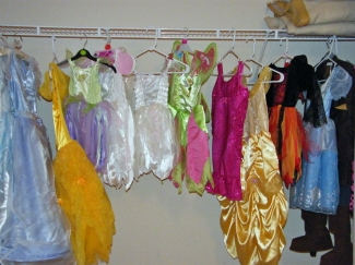 Disney dressing up clothes for the Princesses and Pirates in the family and themed rooms.