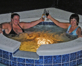 A private sun-drenched pool and a spa that can be cool or HOT with conservation view and screening hedges to the side.