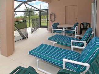 This villa has its own private Swimmimg Pool . When the sun gets too much, for those guests wanting some shade there is a large covered Lanai . With ample Patio Furniture as well as a plush 4-seater dining table, the lanai also provides a nice area to eat meals al fresco or to sit and relax with an evening drink and watch the sun set. . For the safety of children the outside deck area is equipped with a Pool Guard .