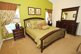 This 4 bedroom, 3 bathroom, (2 of which are en-suite), fully air conditioned villa sleeps 10 people with the aid of a sofa bed. It is beautifully decorated and updated with comfy,attractive sofas in the TV lounge as well as the formal lounge, gorgeous bedroom furnishings and window treatments throughout. As well as the lounge, all four bedrooms have HD cable TV and DVD players. Bring your laptop and make use of the FREE wireless internet and if you need to phone home then there are FREE telephone calls to the UK as well as calls within the US and other worldwide destinations. The Games Room houses the 8ft slate pool table, air hockey table and electronic dartboard. Try your hand at fishing in the pond behind the villa, we have provided a couple of rods for just that pleasure. For those quiet nights in we have a selection of DVD's, books, boardgames and Wii console with Wii sports game. There is a separate utility room for the washer, dryer, iron and ironing board and free use of safe.