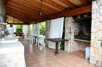 Outside of the house you find the covered terrace with access to a heavenly garden with variety of trees. Beside the pool a fully covered barbeque house, where you can enjoy your holidays in Mallorca.