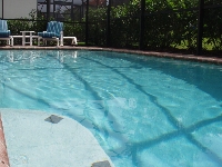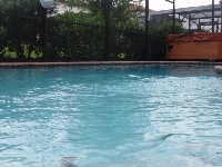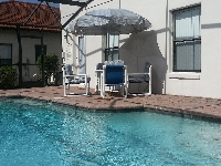 solar pool blanket on roller, and surrounded with mature flowering plants for PRIVACY (heating available )