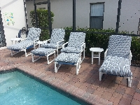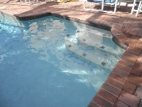 A large East facing covered private pool with MULTI – COLOURED underwater lighting, LUXURY-padded furniture including 2 x recliners with footrests 2 x sun loungers and 4 x seats,