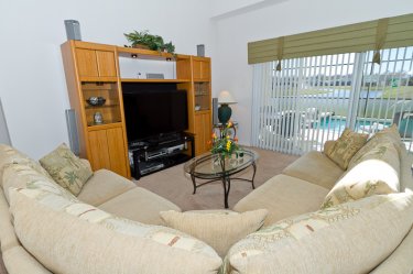 The pool is south/west facing onto a lake. We supply patio furniture and loungers for relaxation and enjoyment. Relax in the jacuzzi after a hard day at the theme parks.